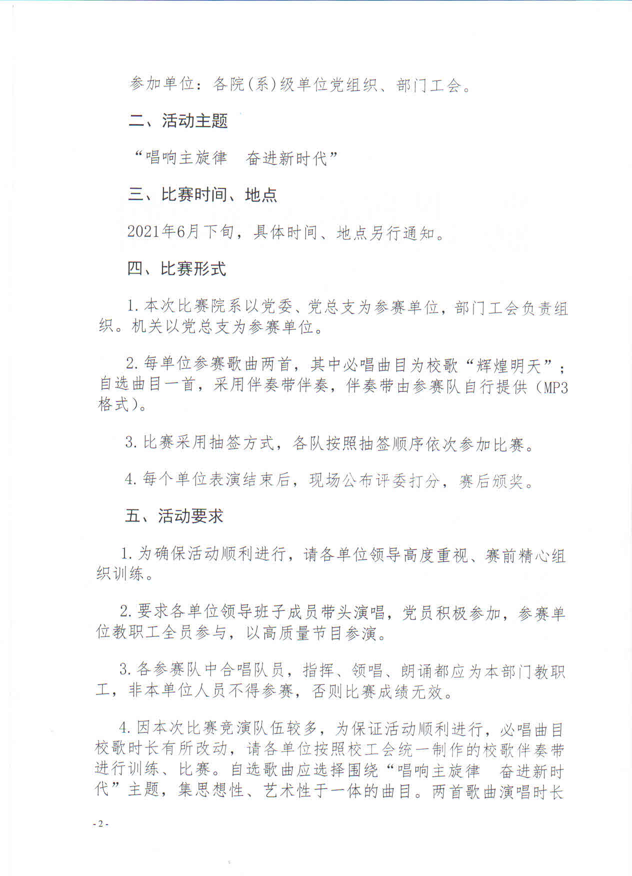 【工会工作】关于举办“唱响主旋律 奋进新时代”庆祝建党100周年暨建校70周年教职工合唱比赛的通知