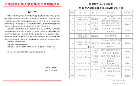 本次培训是公司党校第一次开展在线培训,为了做好此项工作,公司党委在修订“员工入党积极分子遴选基本条件(试行)”基础上,从政治思想、在校课业、学术竞赛、社会实践等多方面考察,经班团遴选推荐、党支部综合评议、公司党委审查公示等环节,本次共遴选了来自公司本硕6个年级共计131名员工参训。为进一步规范在线培训工作,公司党校提前选择网络平台测试、认真编制授课计划,组织学员分班分组,建立学习跟踪交流制度,严格学习过程考勤,对参训学员的到课出勤、笔记记录、心得撰写、交流讨论等进行全程记录,综合计算培训学习成绩。据悉,本次培训共设置9讲,采用专题报告、主题交流、音像教学相结合的形式,授课内容涵盖当前时事政治、党史党情、入党基本知识等内容。