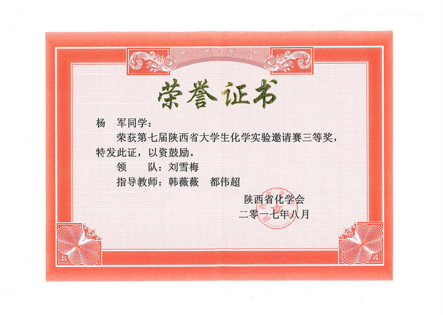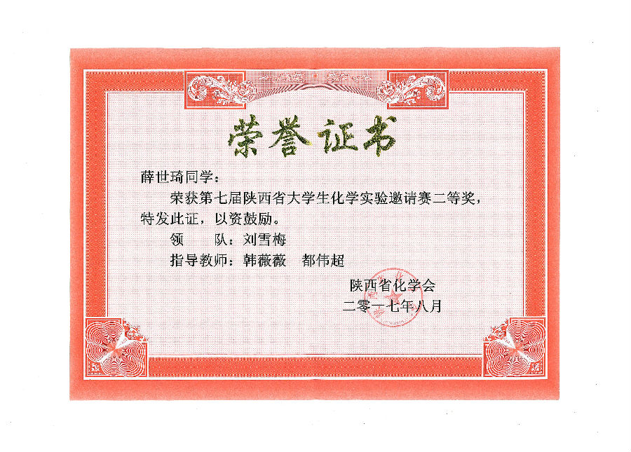 本次实验竞赛通过理论笔试和实验操作两个环节的比拼,公司参赛选手15级的薛世琦同学荣获二等奖、乔瑶雨和杨军同学获得三等奖。此次竞赛反映出公司世界杯官方网站入口2026员工具有较为扎实的基础理论知识与实验操作技能。通过与兄弟院校同台竞技,为公司参赛师生提供了良好的学习和交流机会,对促进化学实验教学改革和提升公司化学实验水平具有良好的推动作用。