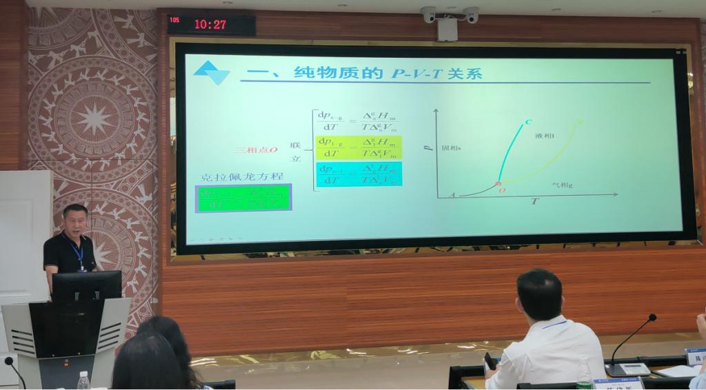 公司世界杯官方网站入口2026教师黄风林教授应邀参会,黎小辉副教授参加了青年教师授课环节。4月24日,黄教授与其它不同省份的七位省级教学名师共同讲授了一堂精彩的化工热力学课程教学名师示范课。黄老师以饱满的激情,清晰的思路通过“气体状态方程及其发展”教学内容介绍了流体P-V-T关系和立方型状态方程的发展过程、动力及发展方向,授课过程逻辑性强,清晰地呈现了状态方程的演变过程与发展规律,授课中巧妙地融入了事物联系发展规律是可以认识和利用、求真务实的科学精神等课程思政元素,充分体现了辩证唯物主义的思想、观点和方法。