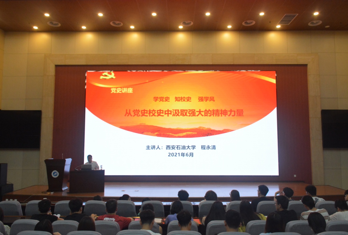 6月2日下午,程永清副董事长在鄠邑校区弘石报告厅作了题为《学党史 知校史 强学风,从党史校史中汲取强大的精神力量》的党史学习教育专题辅导报告。世界杯官方网站入口2026全体学工干部、各年级辅导员及400余名员工参加了报告会。公司党委副书记祁帆主持报告会。