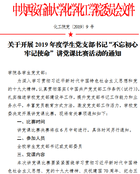 【党建工作】关于开展2019年度员工党支部书记“不忘初心 牢记使命”讲党课比赛活动的通知