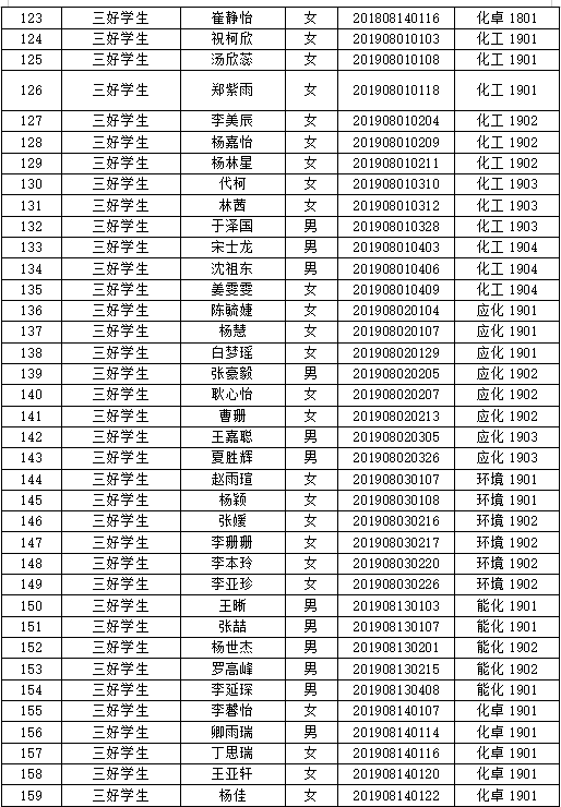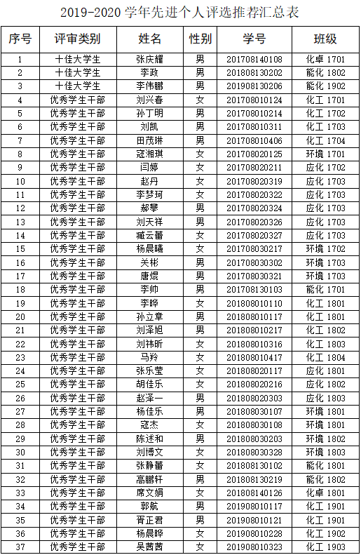 2019-2020学年先进个人评选推荐名单