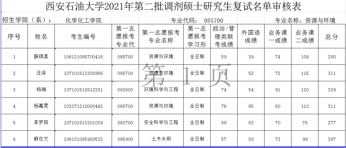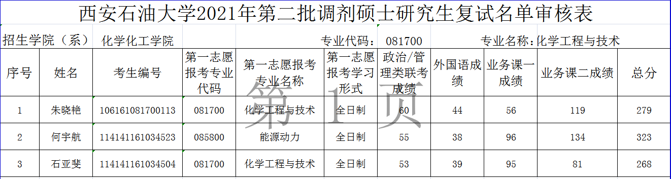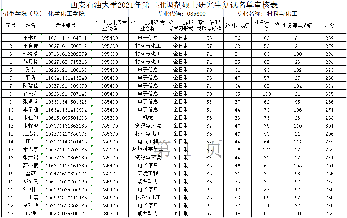 2021年参加第二批调剂硕士研究生复试名单公示