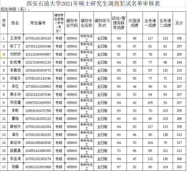 2021年参加第六批调剂硕士研究生复试名单公示