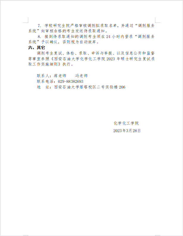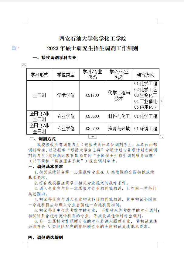 2023年硕士研究生招生调剂工作细则