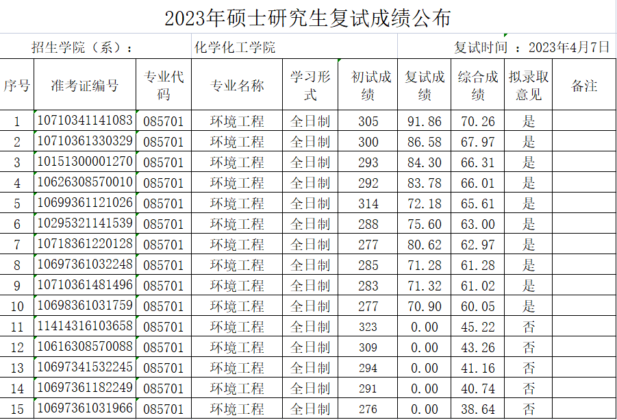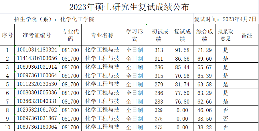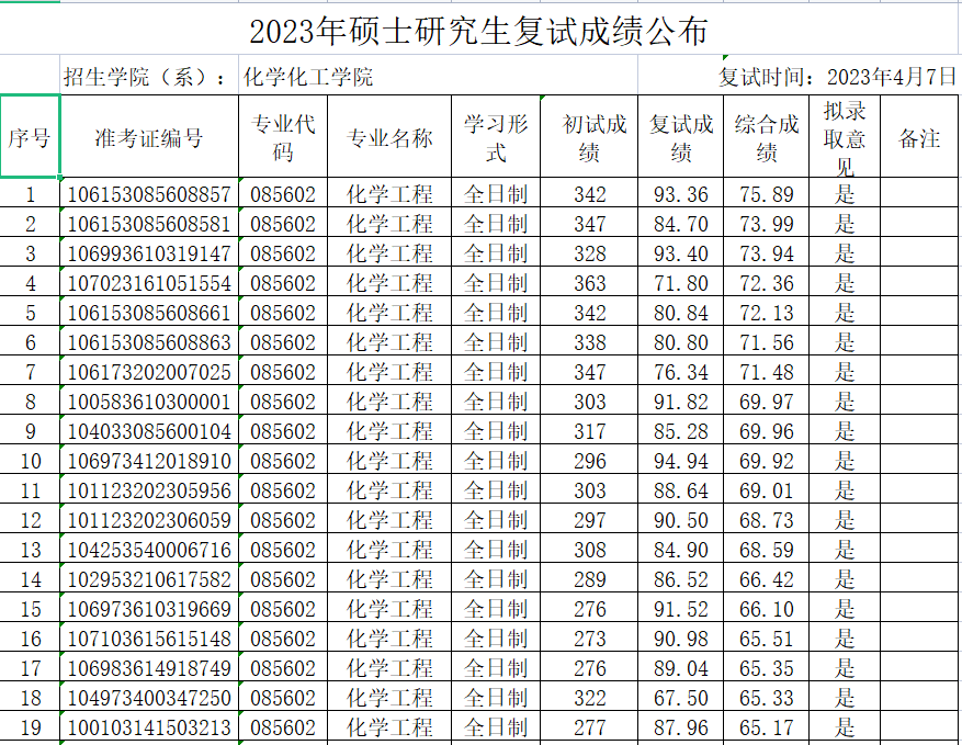 【招生工作】2023年硕士研究生复试成绩公布(第一批调剂)